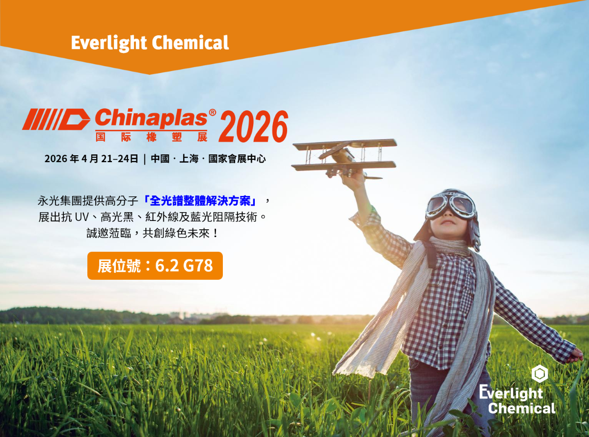 永光化學 Eversorb 功能性母粒系列,針對 PE/PP/TPU/PC/PMMA 等樹脂提供耐候、抗藍光、隔熱與高光黑 IR-PASS 等尖端解決方案,廣泛應用於汽車、建材、電子、鞋材等產業。